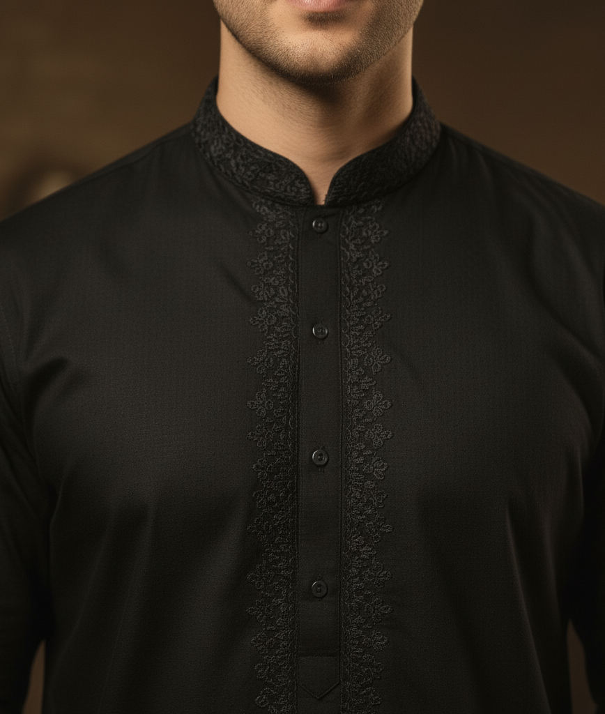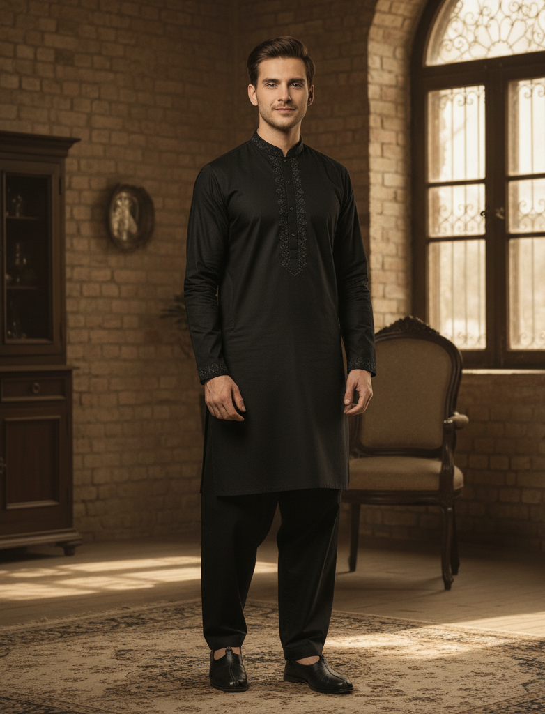 Designed for Pakistani men who appreciate timeless elegance, the Dark Empire Shalwar Kameez is easy to maintain, color-safe, and wrinkle-resistant. Its minimalist yet classy detailing ensures you stand out without overdoing it.